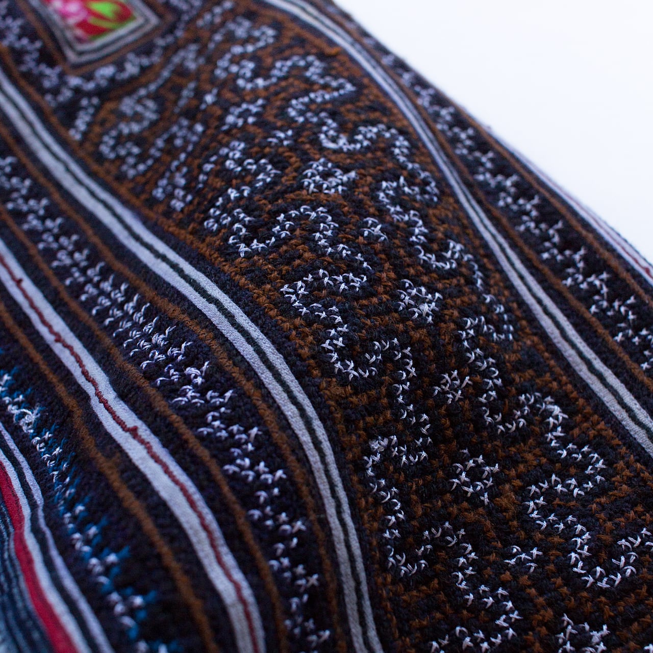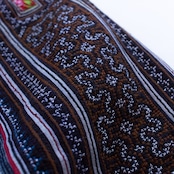 茶系統色の緻密なクロスステッチ刺繍はモン族の手仕事布。
