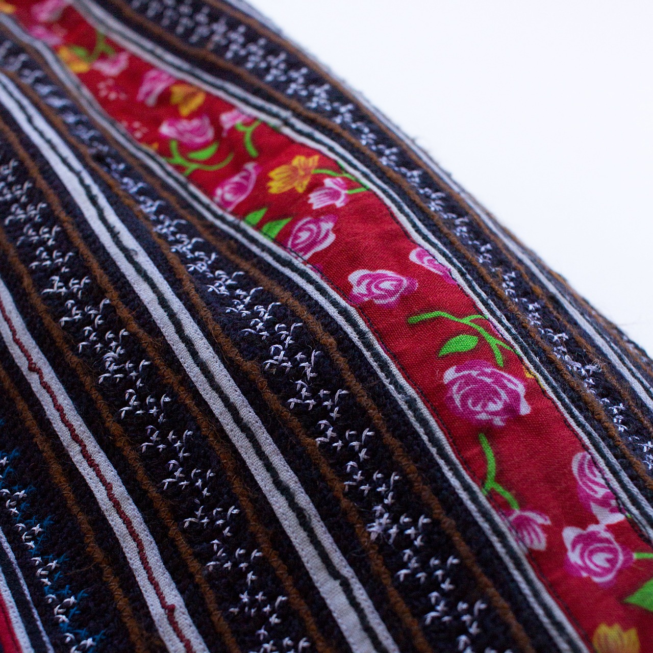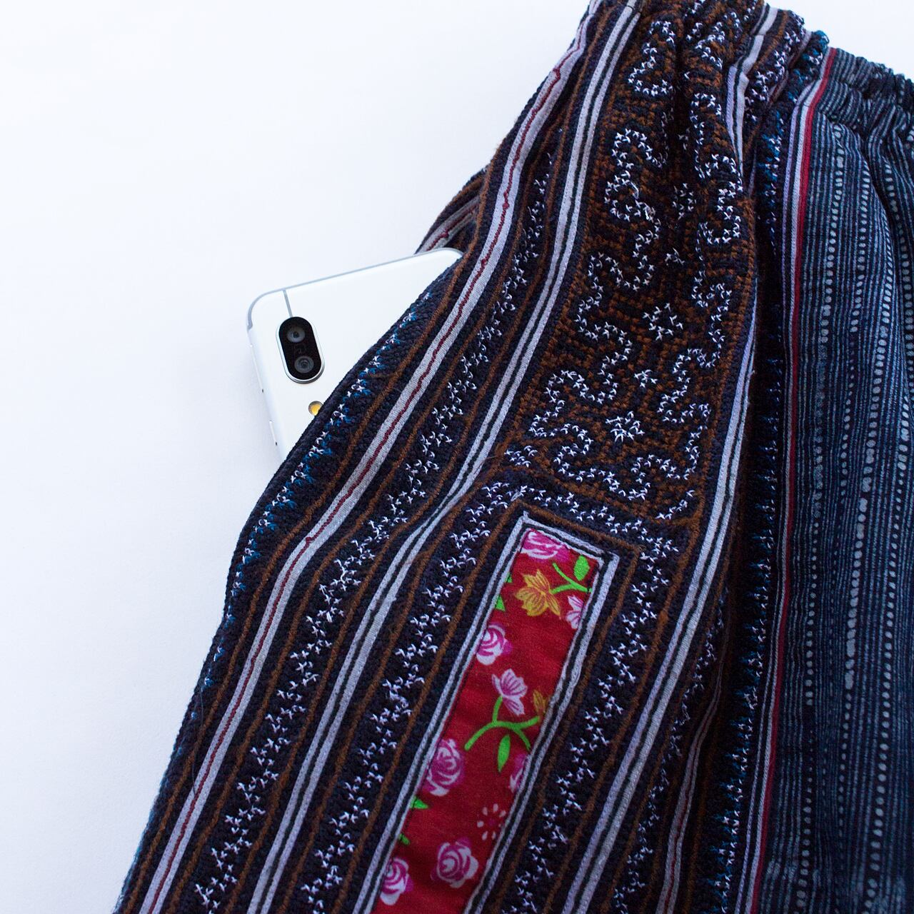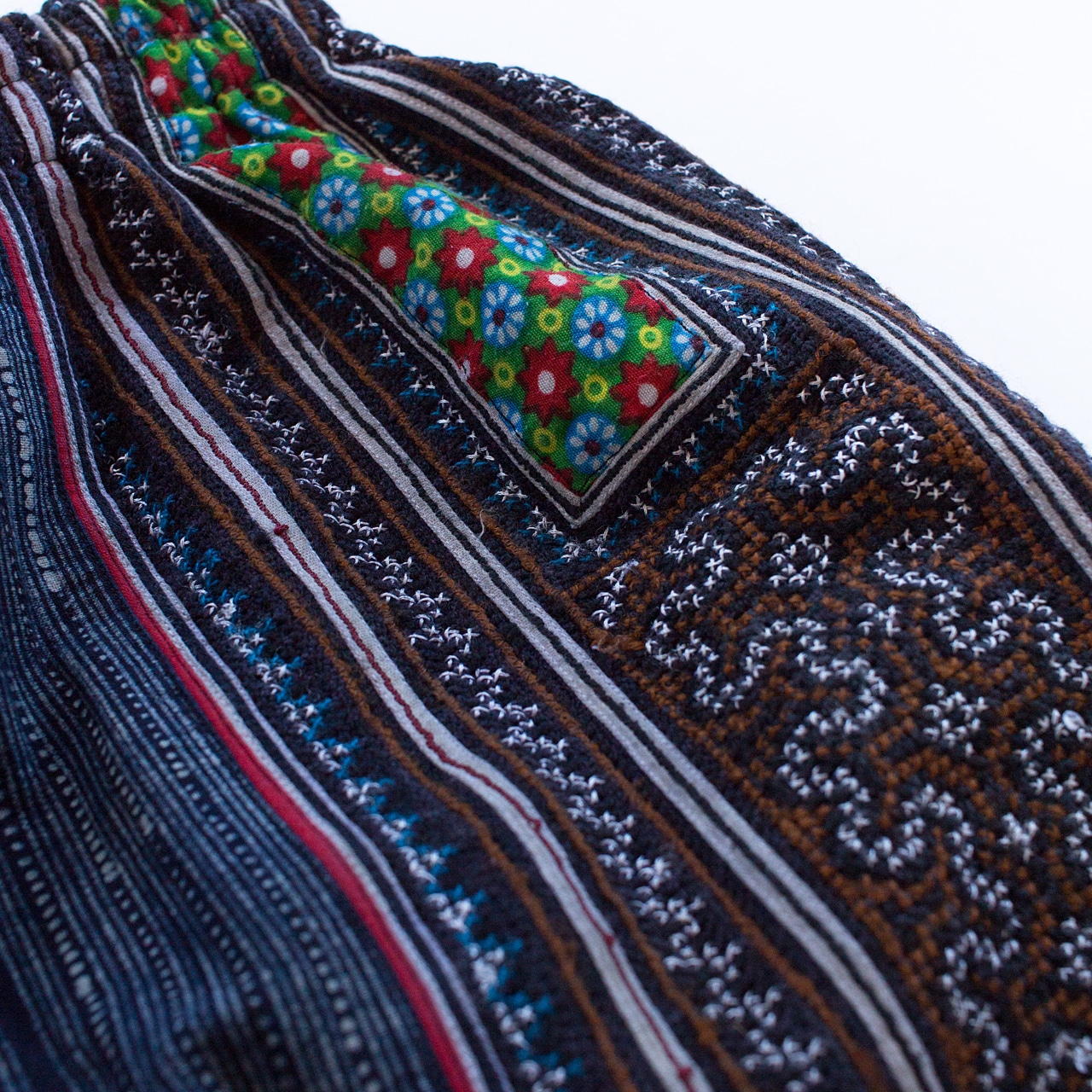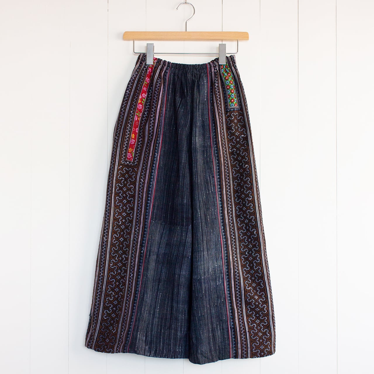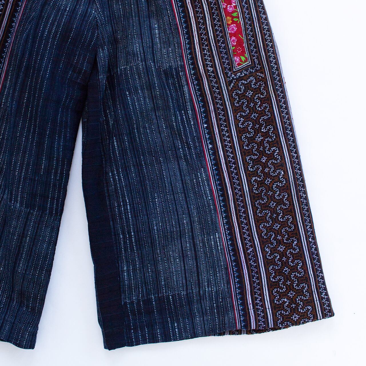 モン族の民族衣装古布をリメイクしたガウチョパンツ/ワイドパンツです。