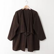 【仕様】 前開き(ボタンなし) 襟は前身ごろのみで首後ろは襟なし 両脇ポケットあり 裏地なし
