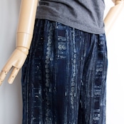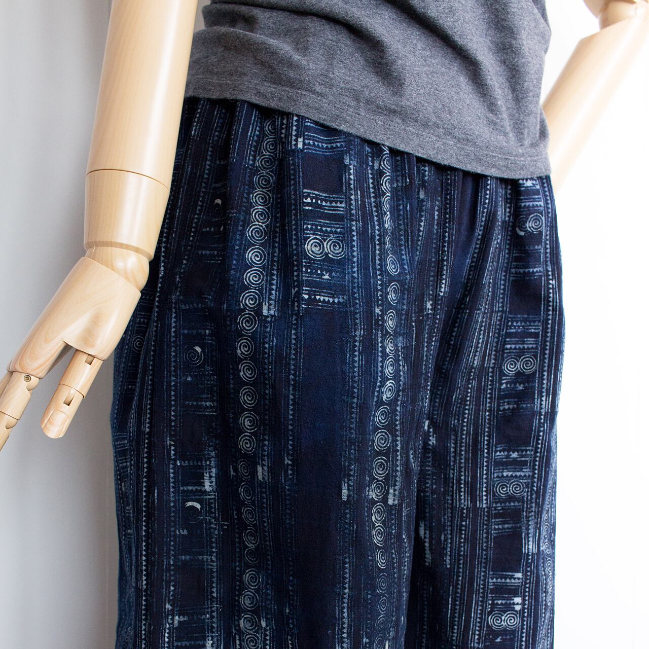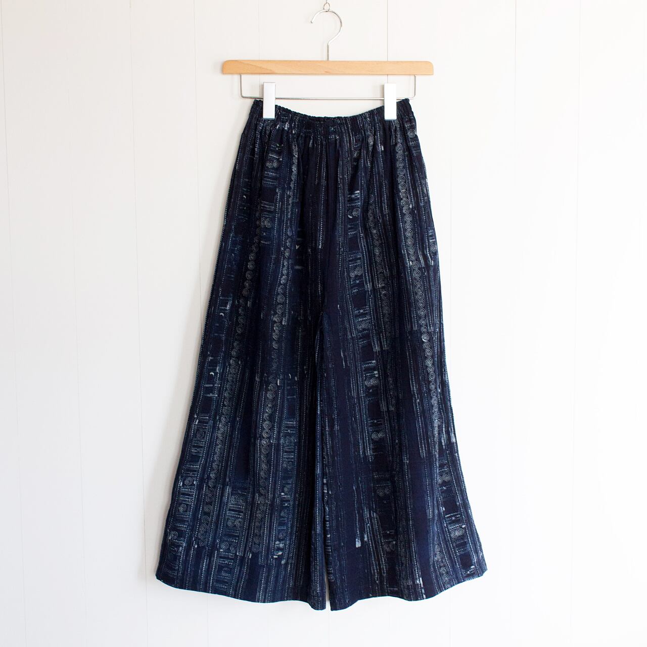 ■■ 濃藍のモン族ろうけつ染めのガウチョパンツ/ワイドパンツ
